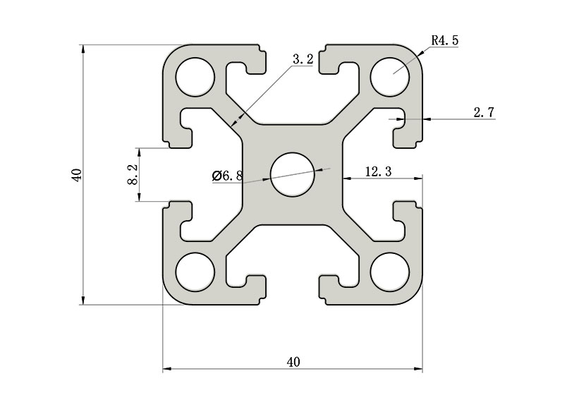 適用于應(yīng)力及強(qiáng)度較大的框架組合結(jié)構(gòu),它的外型采用圓角過(guò)渡,表面經(jīng)過(guò)陽(yáng)極氧化處理,高雅美觀并抗腐蝕,它通常采用M8X20高強(qiáng)度專(zhuān)用螺栓加彈性扣件的內(nèi)部連接方式,堅(jiān)固而又可靠,是工業(yè)框架應(yīng)用較為廣泛的型材之一。