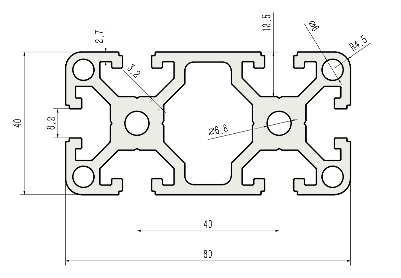 適用于應(yīng)力及強(qiáng)度較大的框架組合結(jié)構(gòu),它的外型采用圓角過渡,表面經(jīng)過陽極氧化處理,高雅美觀并抗腐蝕,它通常采用M8X20高強(qiáng)度專用螺栓加彈性扣件的內(nèi)部連接方式,堅(jiān)固而又可靠,是工業(yè)框架應(yīng)用較為廣泛的型材之一。