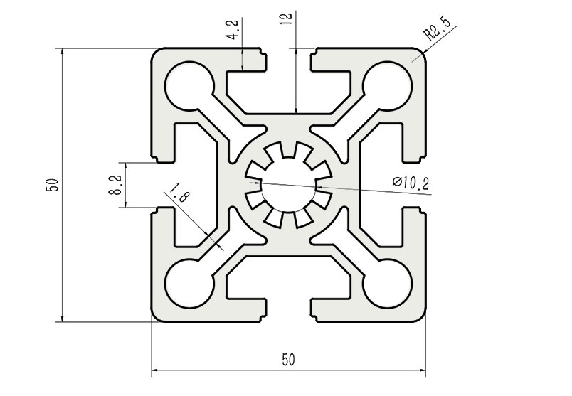 適用于應(yīng)力及強(qiáng)度較大的框架組合結(jié)構(gòu),它的外型采用圓角過渡,表面經(jīng)過陽極氧化處理,高雅美觀并抗腐蝕,它通常采用M12X30高強(qiáng)度專用螺栓加彈性扣件的內(nèi)部連接方式,堅(jiān)固而又可靠,是工業(yè)框架應(yīng)用較為廣泛的型材之一。